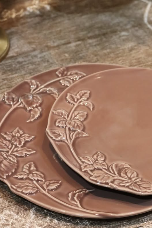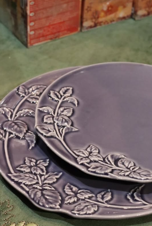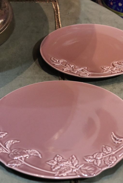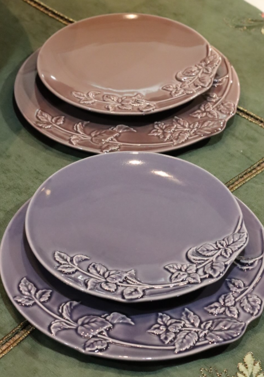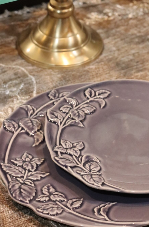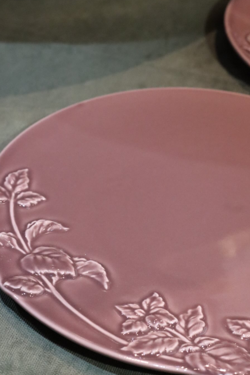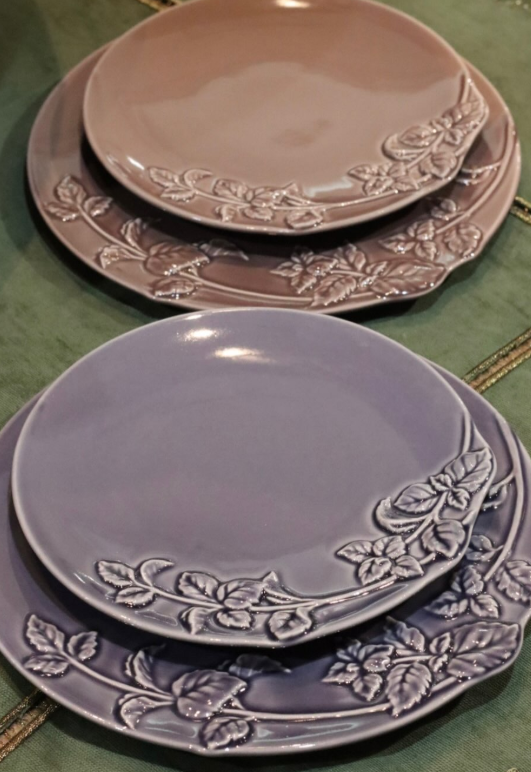 ミントの葉脈や凹んだ部分の装飾には釉薬が溜まり立体的に浮かび上がります。