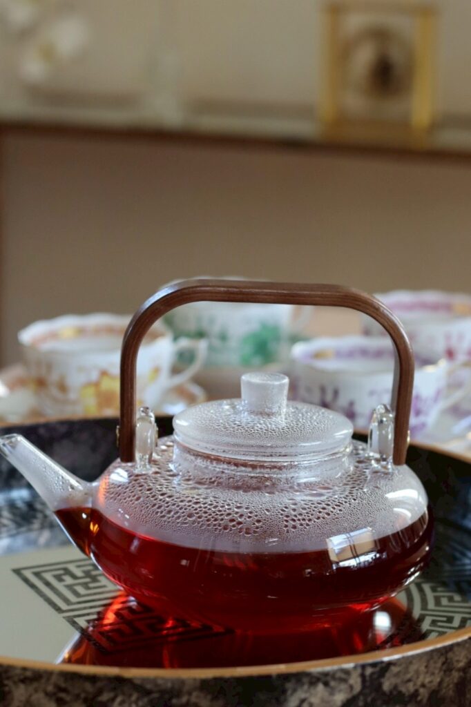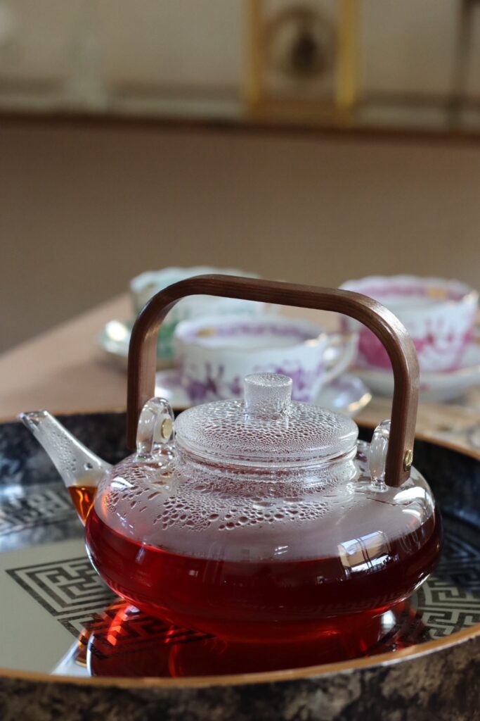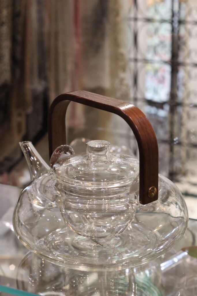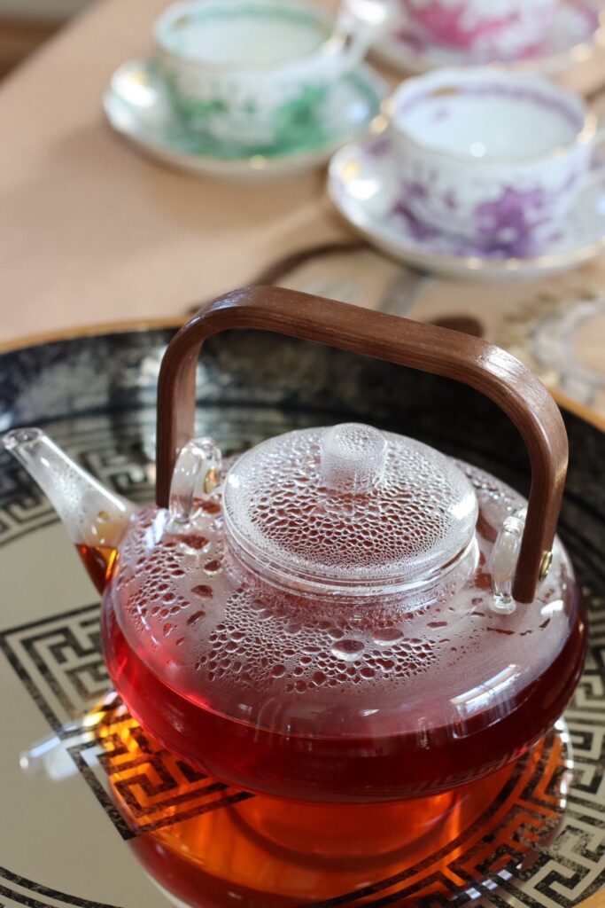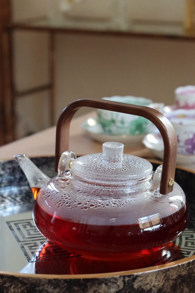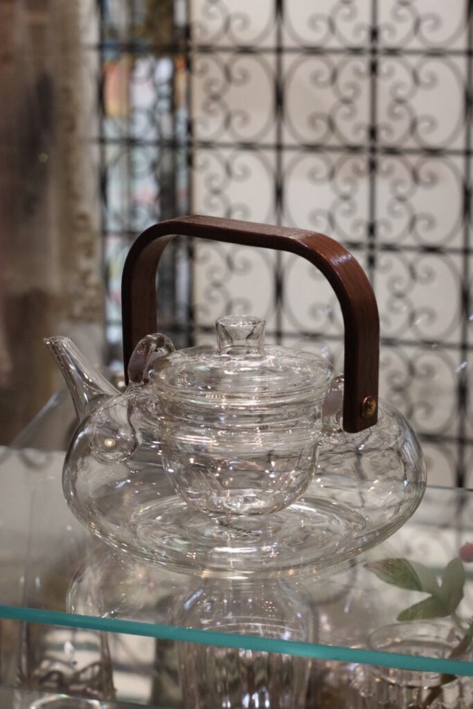 先日、新入荷したガラスポットに天然木を融合したティーポットで、おもてなしをしました。