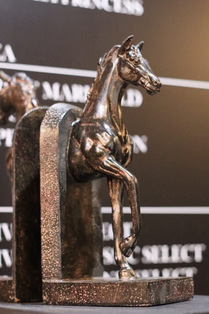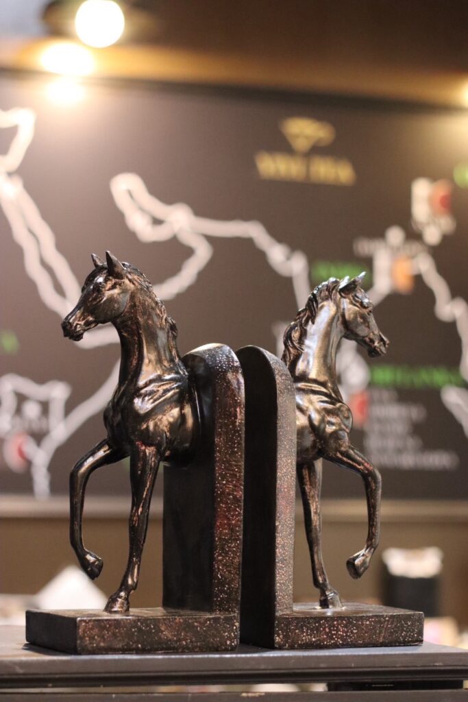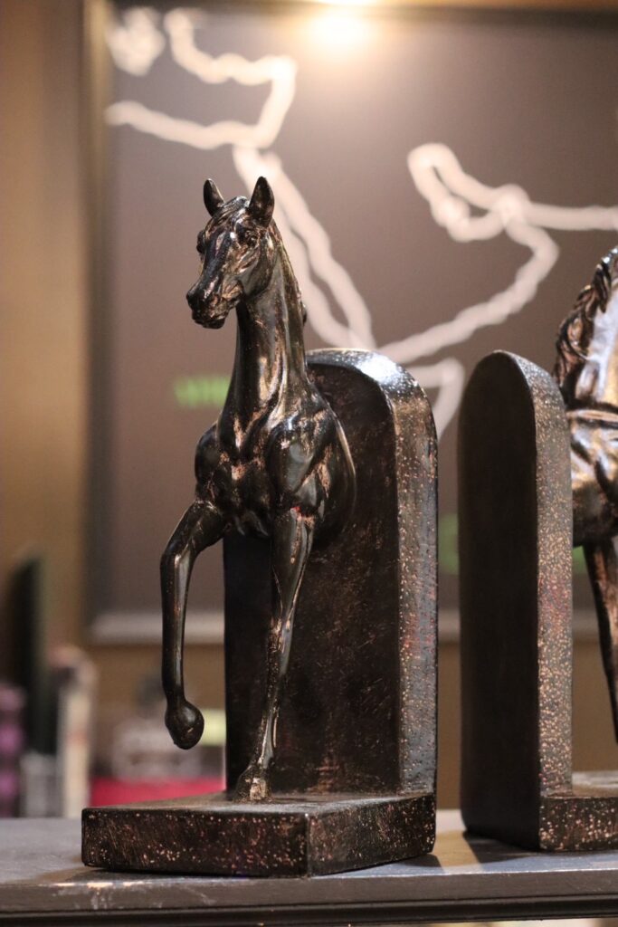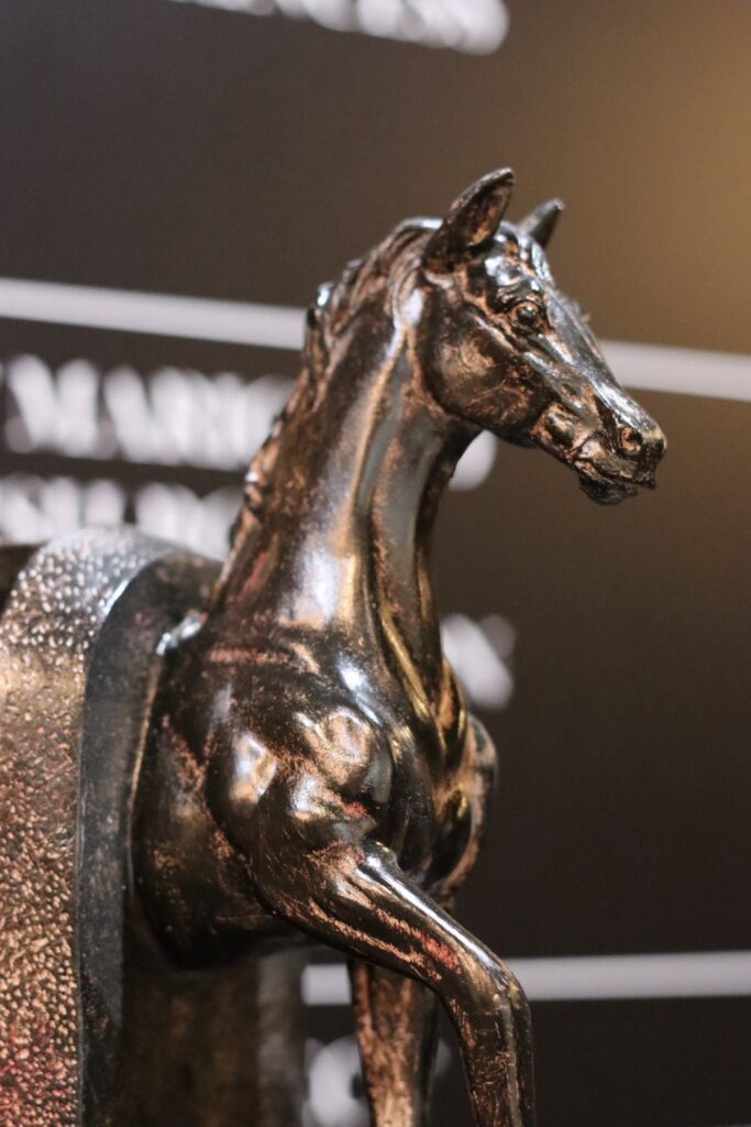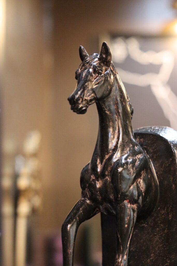 馬の美しいフォルムと光沢あるブラックカラーが高級感があり、