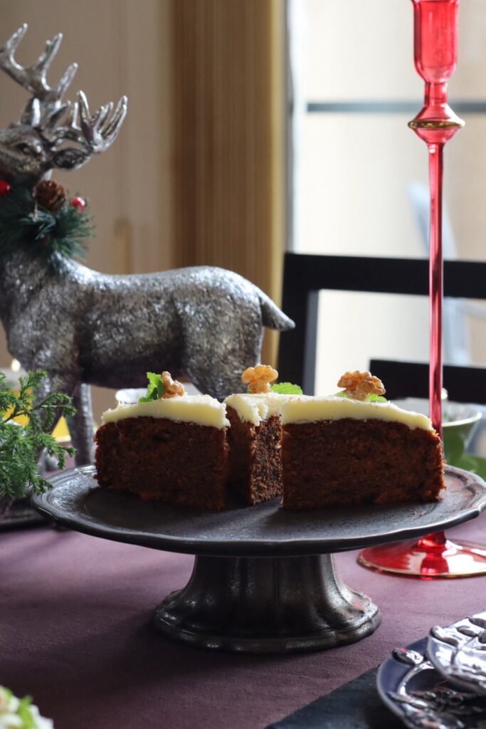新作のケーキスタンドにキャロットケーキを乗せて♡