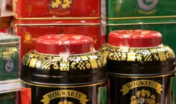 ハリー・ポッターの絵柄の紅茶缶が入荷しました。 ハリー・ポッターのホグワーツ、4つの寮の紋章が描かれ …