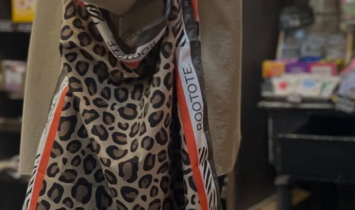 スカーフを2枚重ねたようなデザインのトートバッグのご紹介です。 ハンドルが内側に付いているので、 パ …