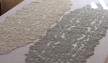春のテーブルコーディネートにおすすめ♡ チュール地に 繊細なボタニカル柄の刺繍を施したテーブルランナ …