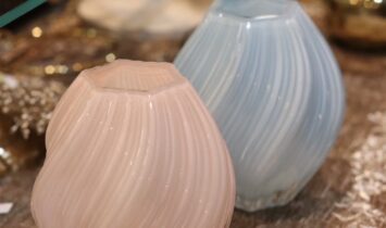 先日入荷した新作の花器を使いました。 細かく砕いて、砂状にしてから、ガラスに色付けをし、 熱してから …